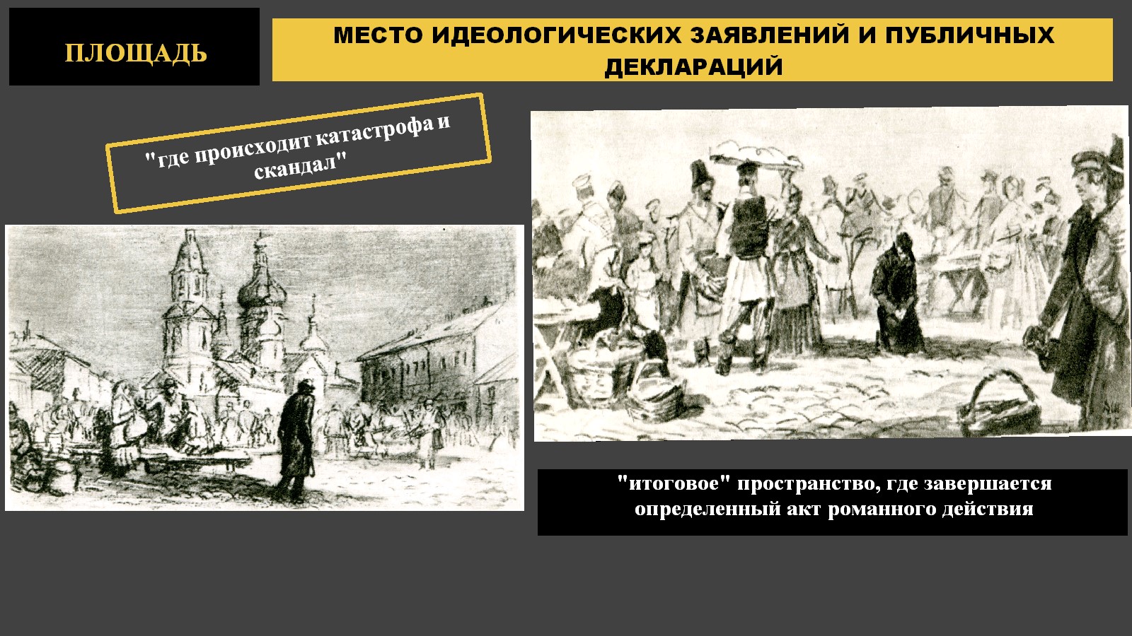 Покаяние свое Раскольников произнесет на этой площади. Сюда он придет, помня слова Сони: «Поди на перекресток, поклонись народу, поцелуй землю, потому что ты и перед ней согрешил, скажи всему миру вслух: «Я убийца».