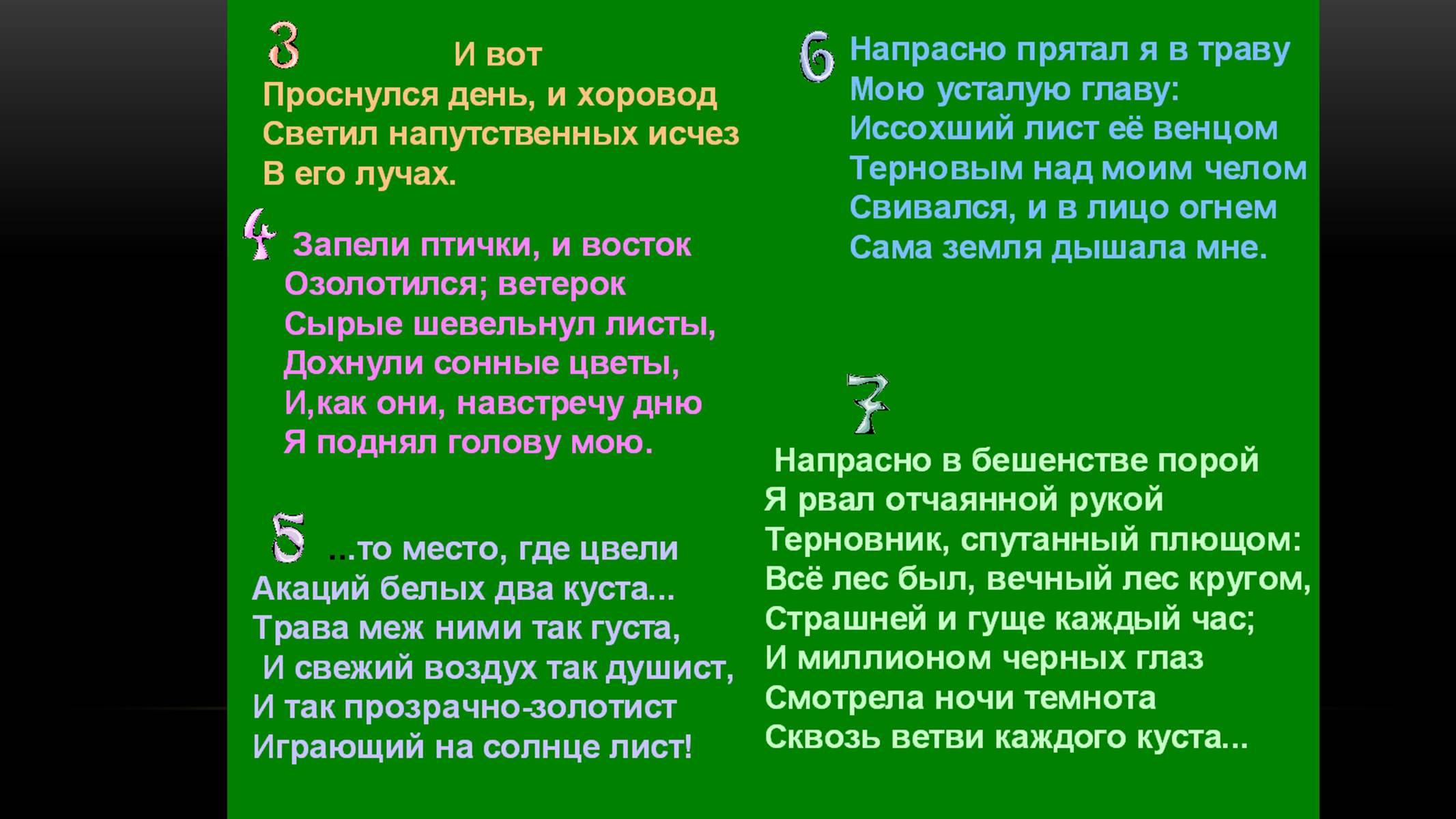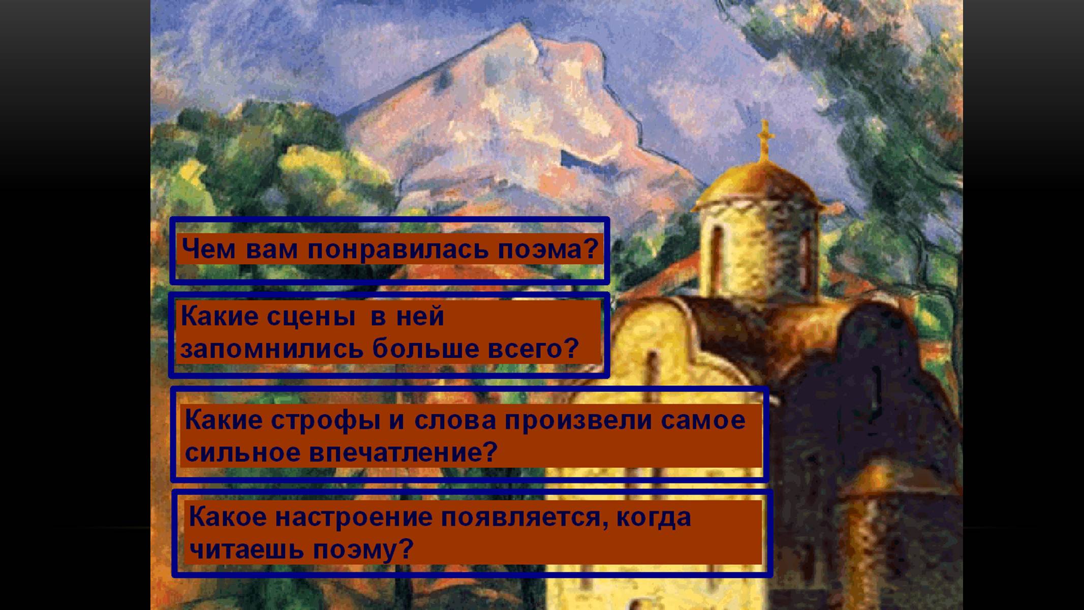 Слайд № 20 – предложение еще раз поработать над текстом поэмы.