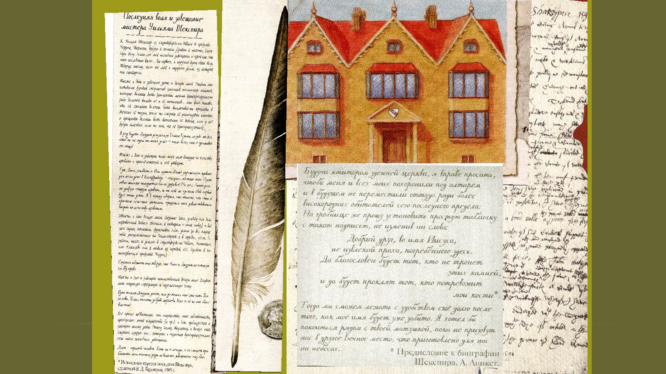 Заключительные слайды повествуют о возвращении писателя в город детства, его последней воле и завещании, которое всегда вызывало много вопросов и даже ставило под сомнение факт написания его Шекспиром. Презентация позволяет развеять многие мифы, которые сопровождали и сопровождают рассказы о его жизни и творчестве.