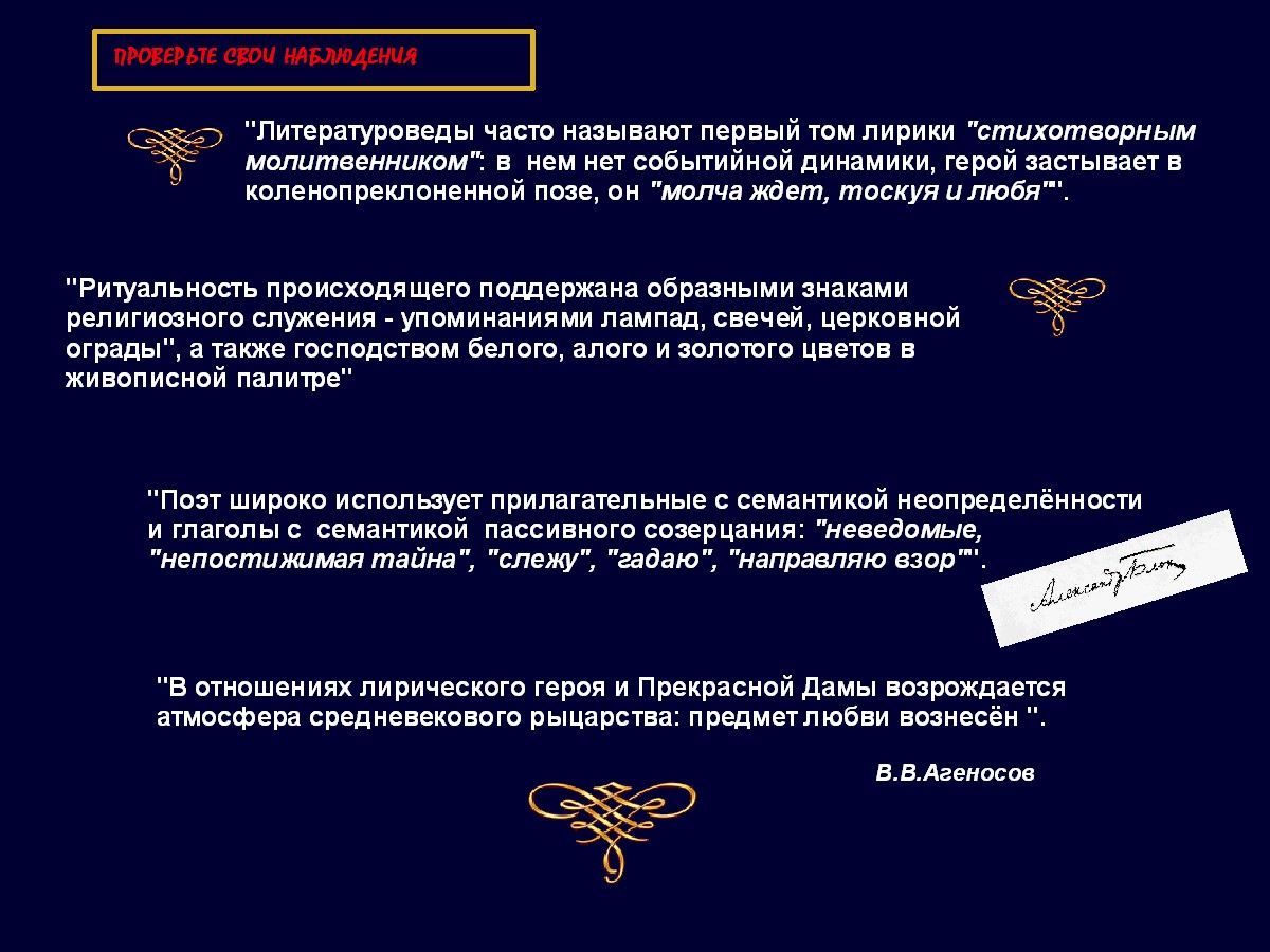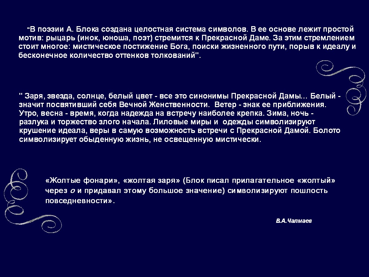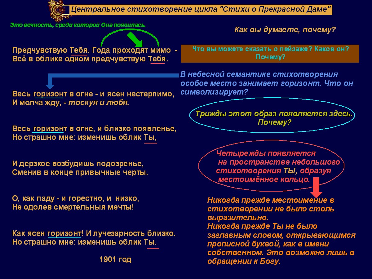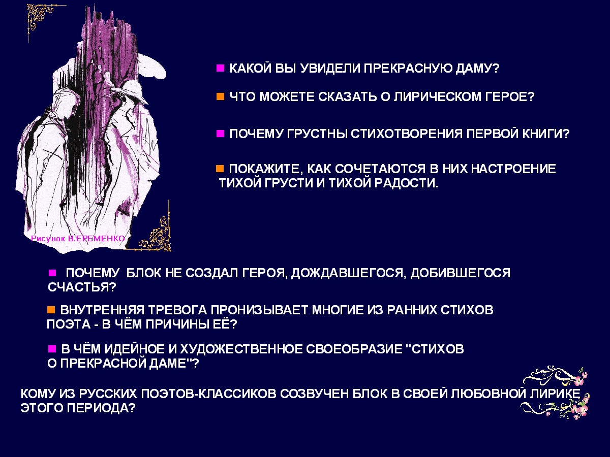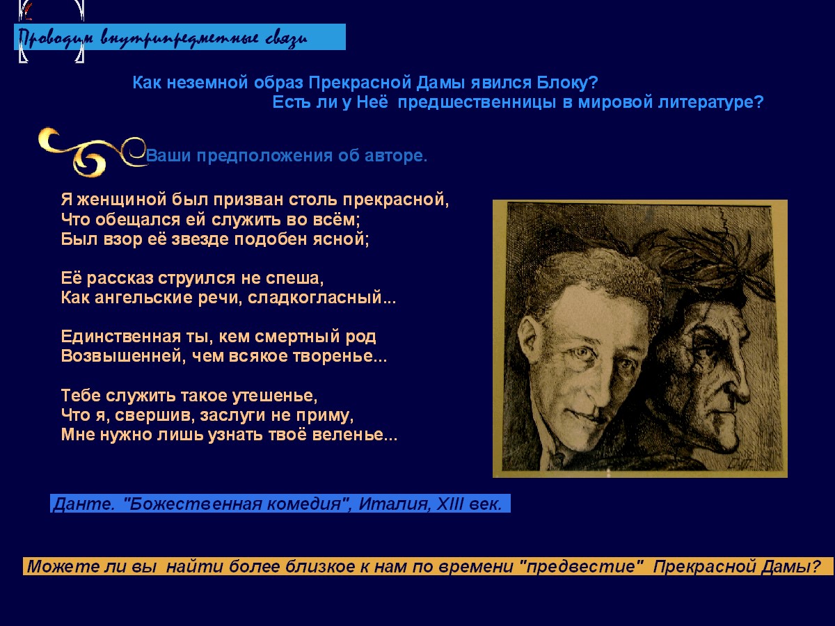Важно напомнить ученикам о том, что у блоковской Прекрасной Дамы в мировой литературе были предшественницы.