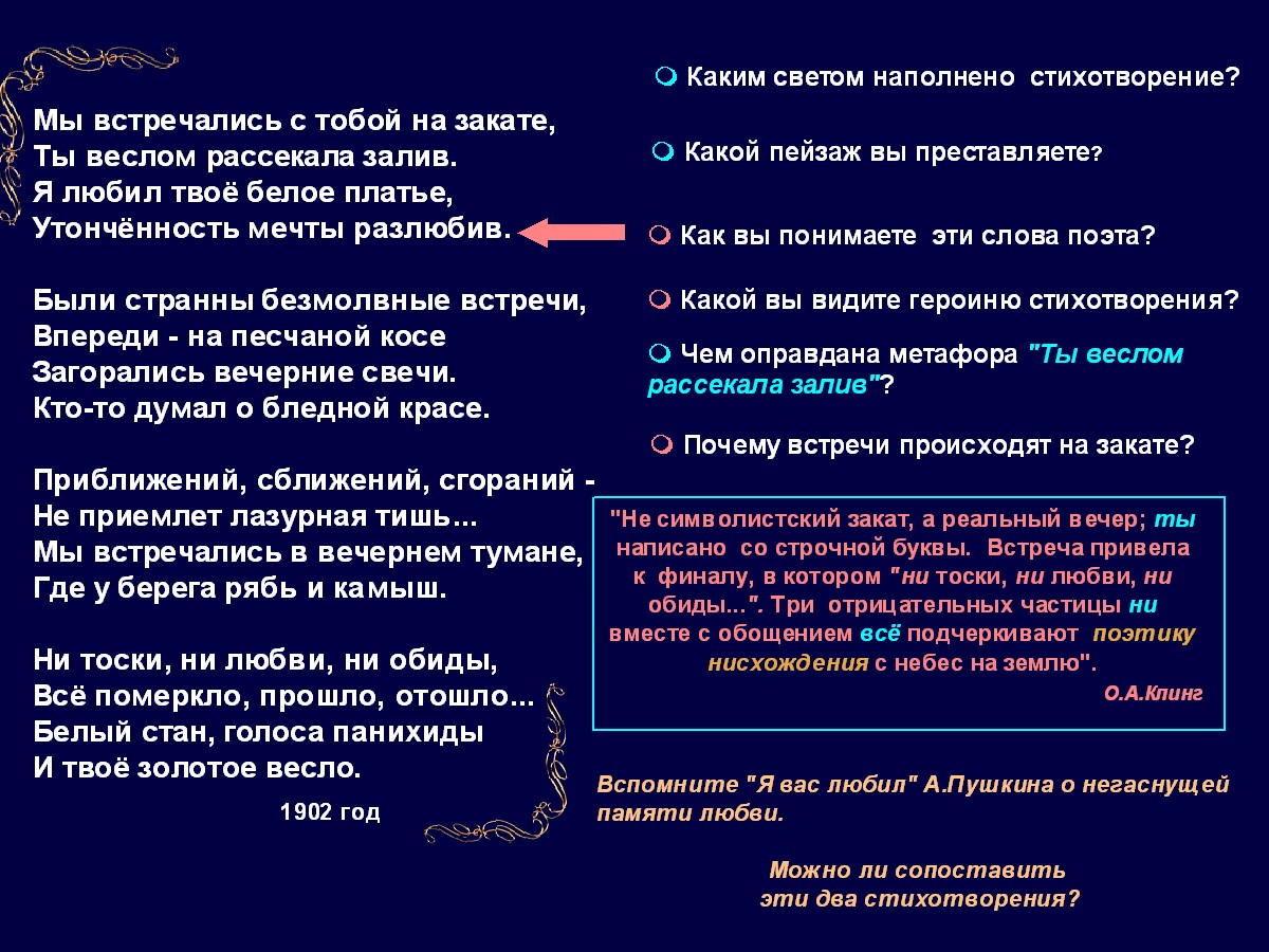 Интересны параллели с любовной лирикой А.С.Пушкина.