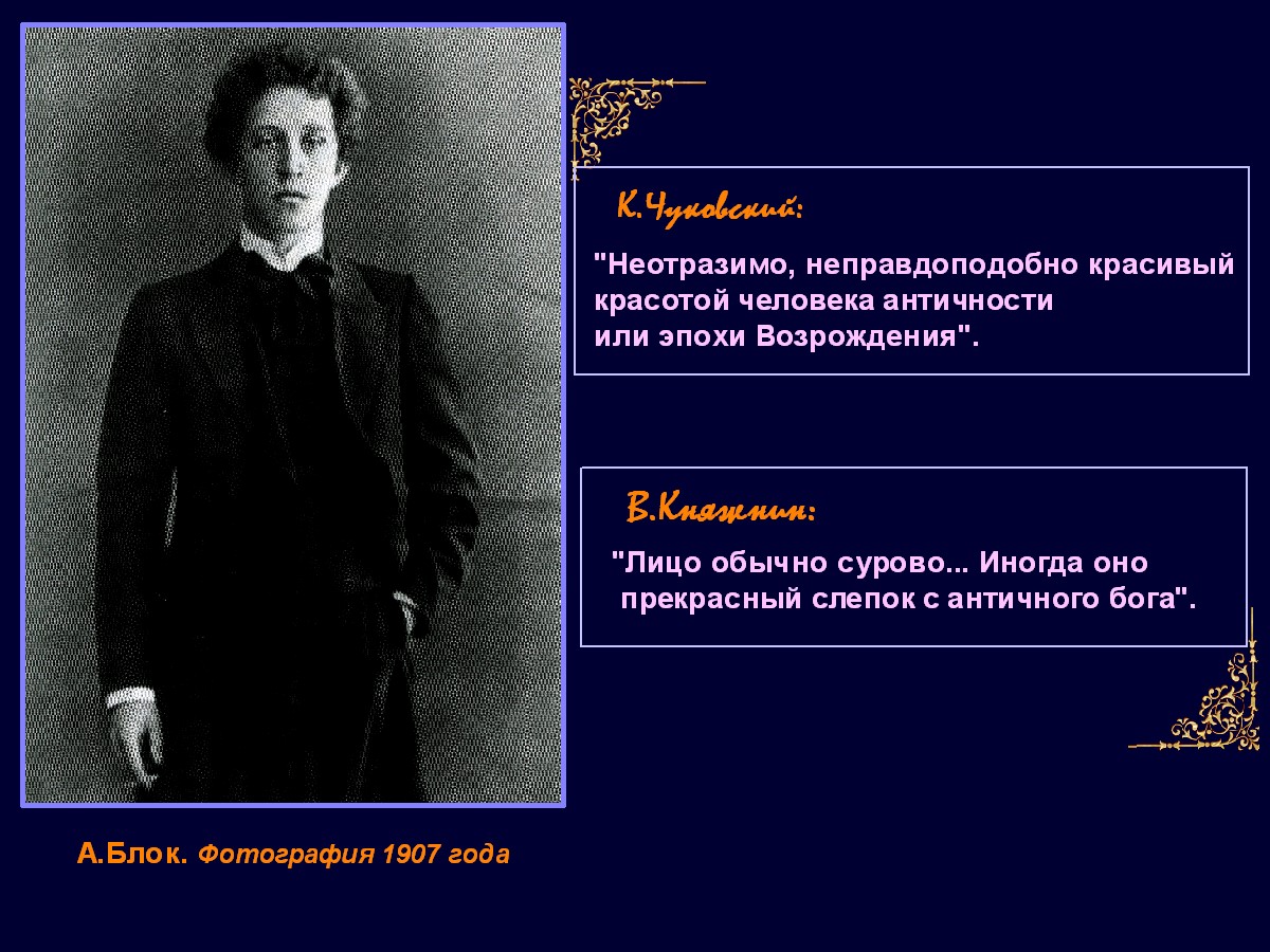 Изобразительный и содержательный ряд первых слайдов поможет почувствовать своеобразие личности поэта, который по совокупности художественных открытий и философских исканий предопределил развитие русской литературы ХХ века.
