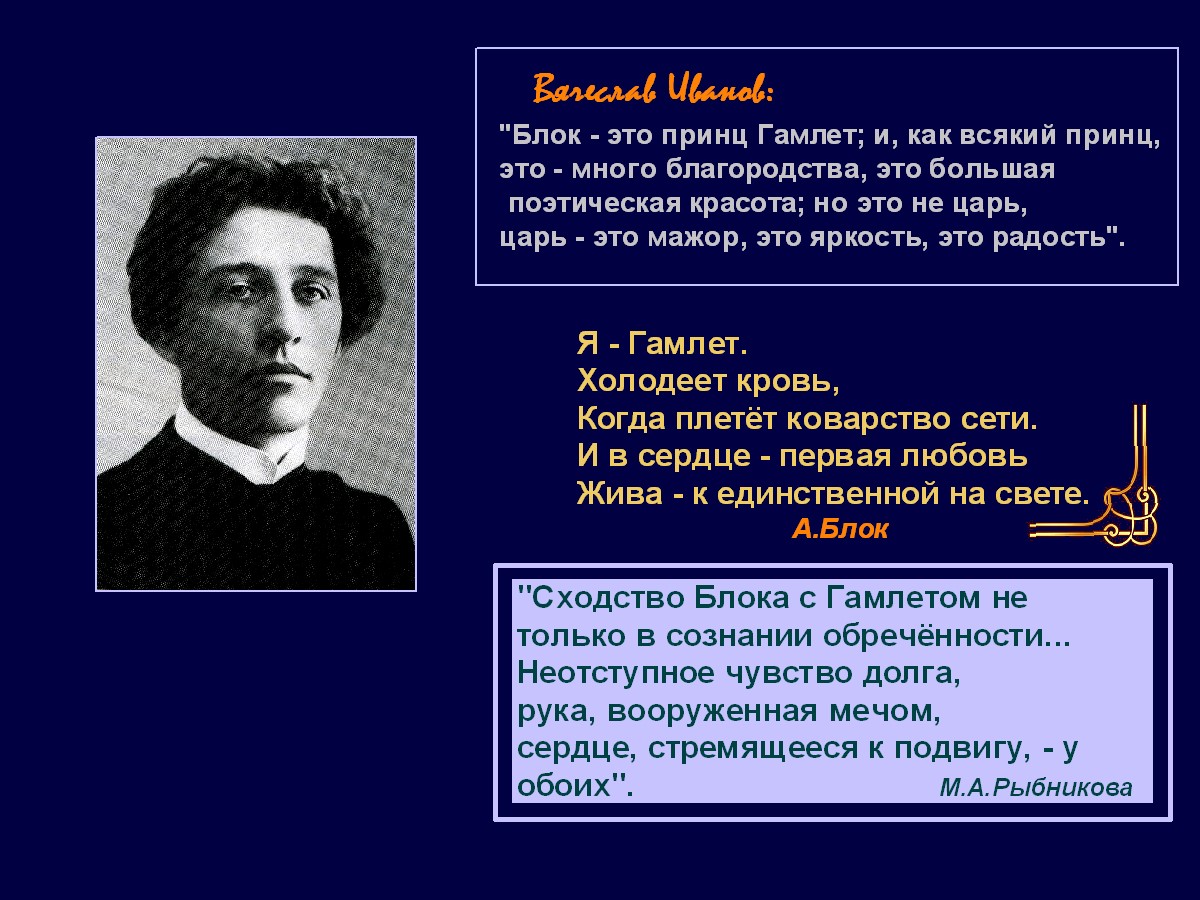 «У каждого, кто любит поэзию, - своя встреча с Блоком. Он нужен юноше, еще не знающему, как выразить себя, и волнуемому смутной тягой к идеалу. Можно сказать, что современный человек – это еще не до конца человек, если он не прошел сквозь туманы и вихри Блока».