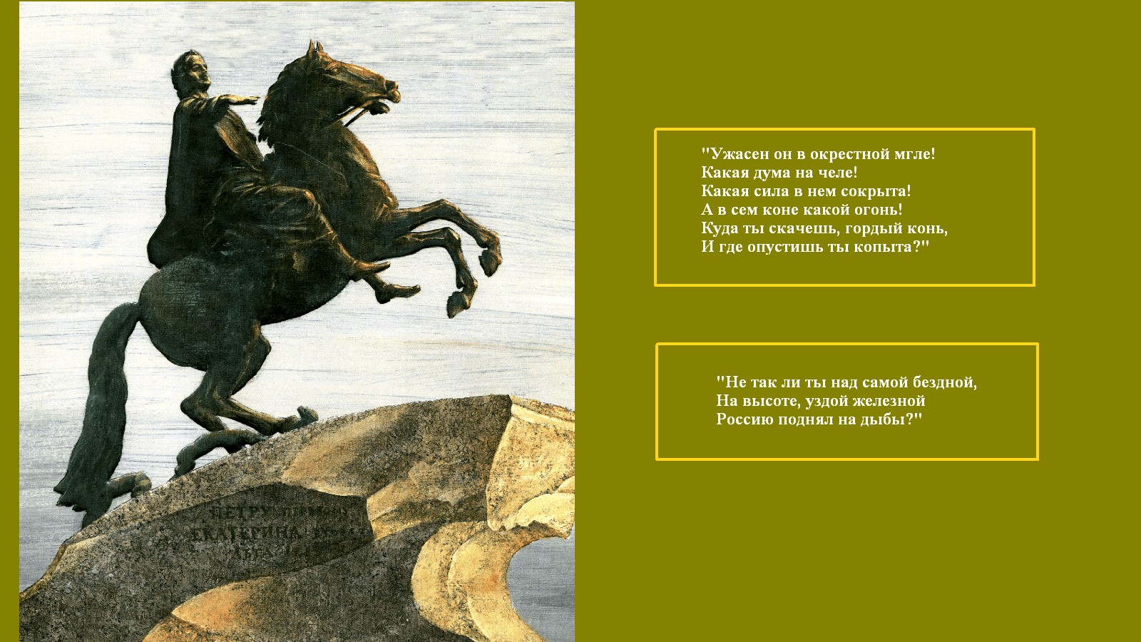 Центр развития продолжает публиковать материалы к занятиям по поэме А.С.Пушкина «Медный всадник». Начало статьи – см. А.С.Пушкин. «Медный всадник» - 1 посвящено анализу вступления к поэме. Данная публикация содержит материалы к анализу 1 части поэмы. Взят также эпизод начала 2 части. В качестве видеоряда мы использовали иллюстрации М.Бычкова, взятые из ресурсной базы нашего центра развития.